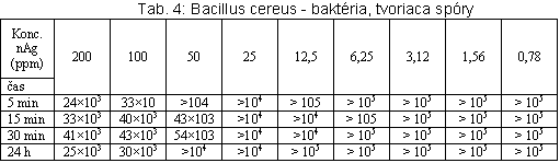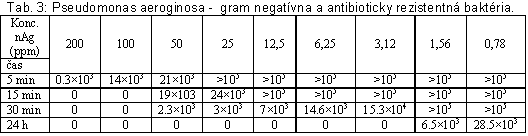Bohužiaľ, autori (20) zistili, že situácia v oblasti účinkov koloidného striebra na mikroorganizmy je zložitejšia, čo dokladujú výsledkami v tab. 5.